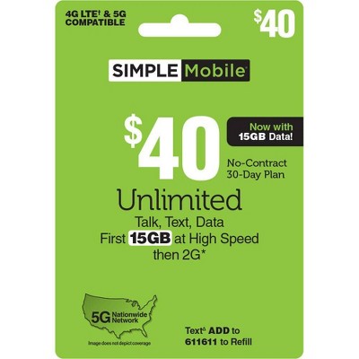Simple Mobile Unlimited Talk Text Data Prepaid Card Email Delivery Target